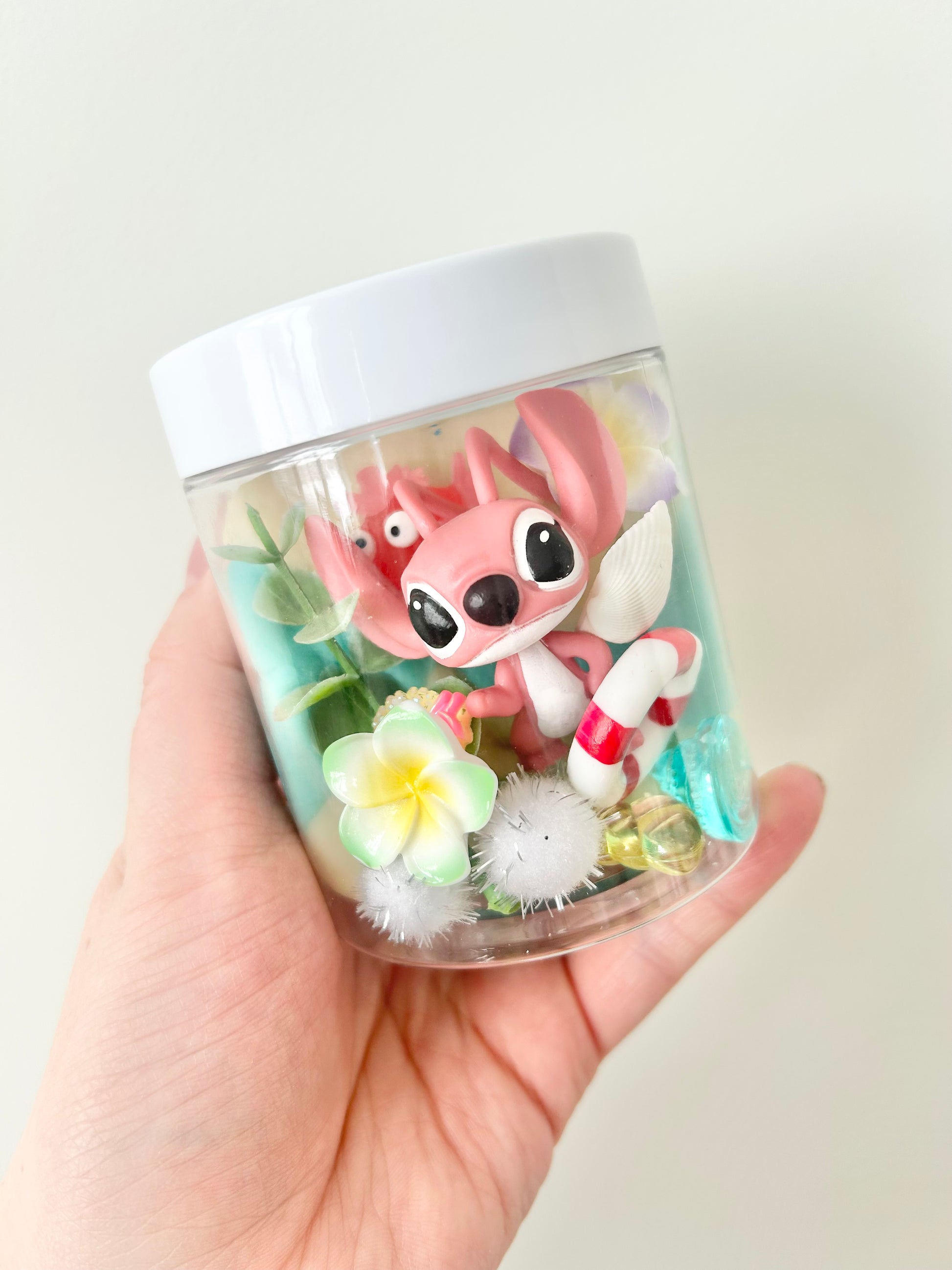 Each jar contains 6 oz handmade, pineapple scented play dough and themed accessories.